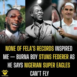Federer then asked which of those records inspired you the most. Burna Boy initially gave a startling reply: “Honestly, none.” A surprised Federer pressed, “Really? Are you for real?” to which Burna insisted: “I promise you. I promise. Well, Fela was a big influence on me.”