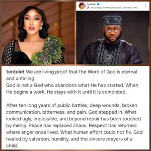 Tonto concluded her message by describing the reconciliation as “10 years in one day,” calling it a powerful personal testimony and a reminder to others that difficult seasons do not last forever.